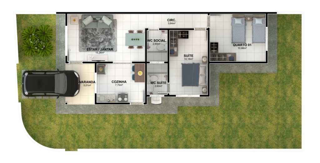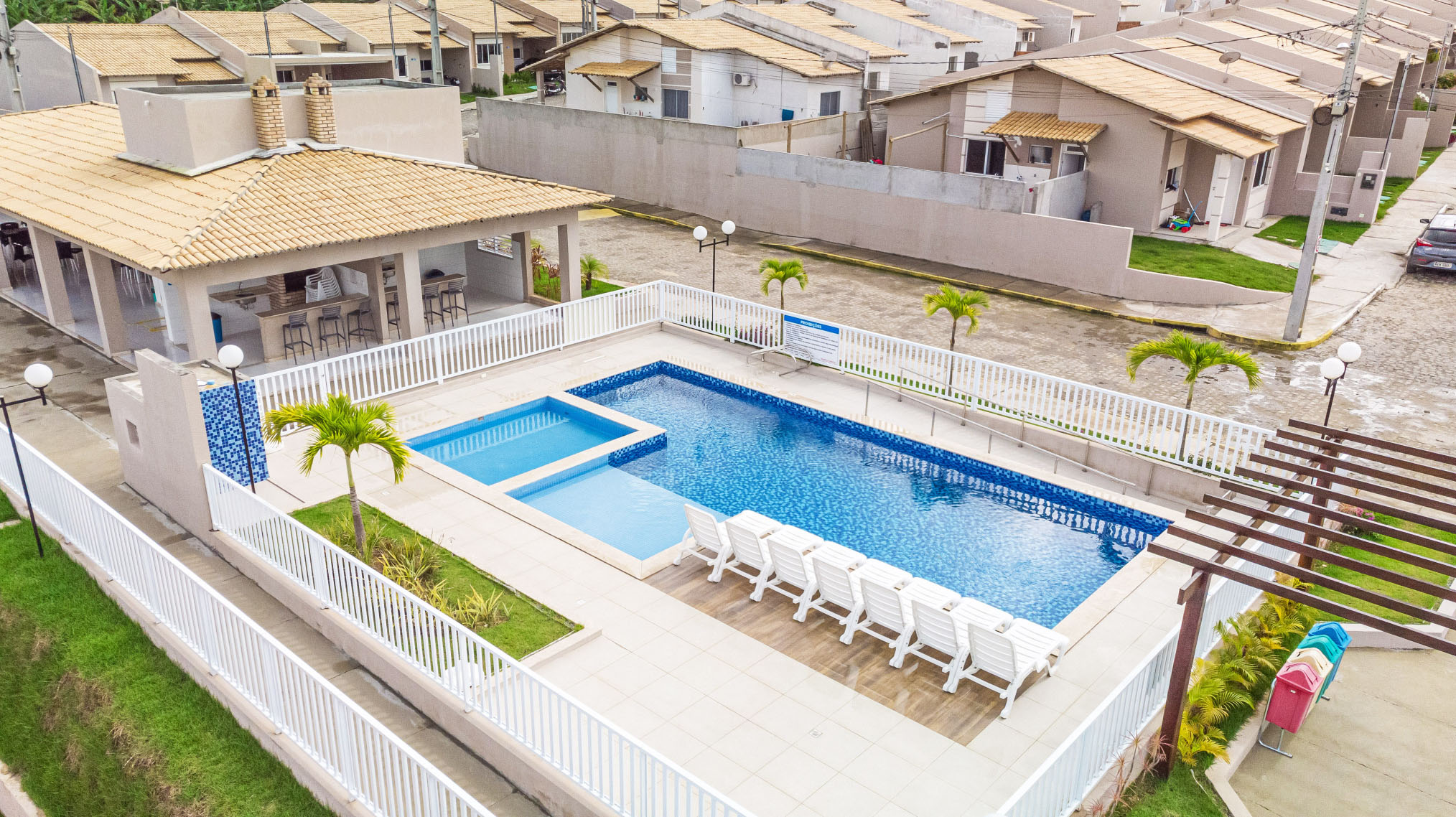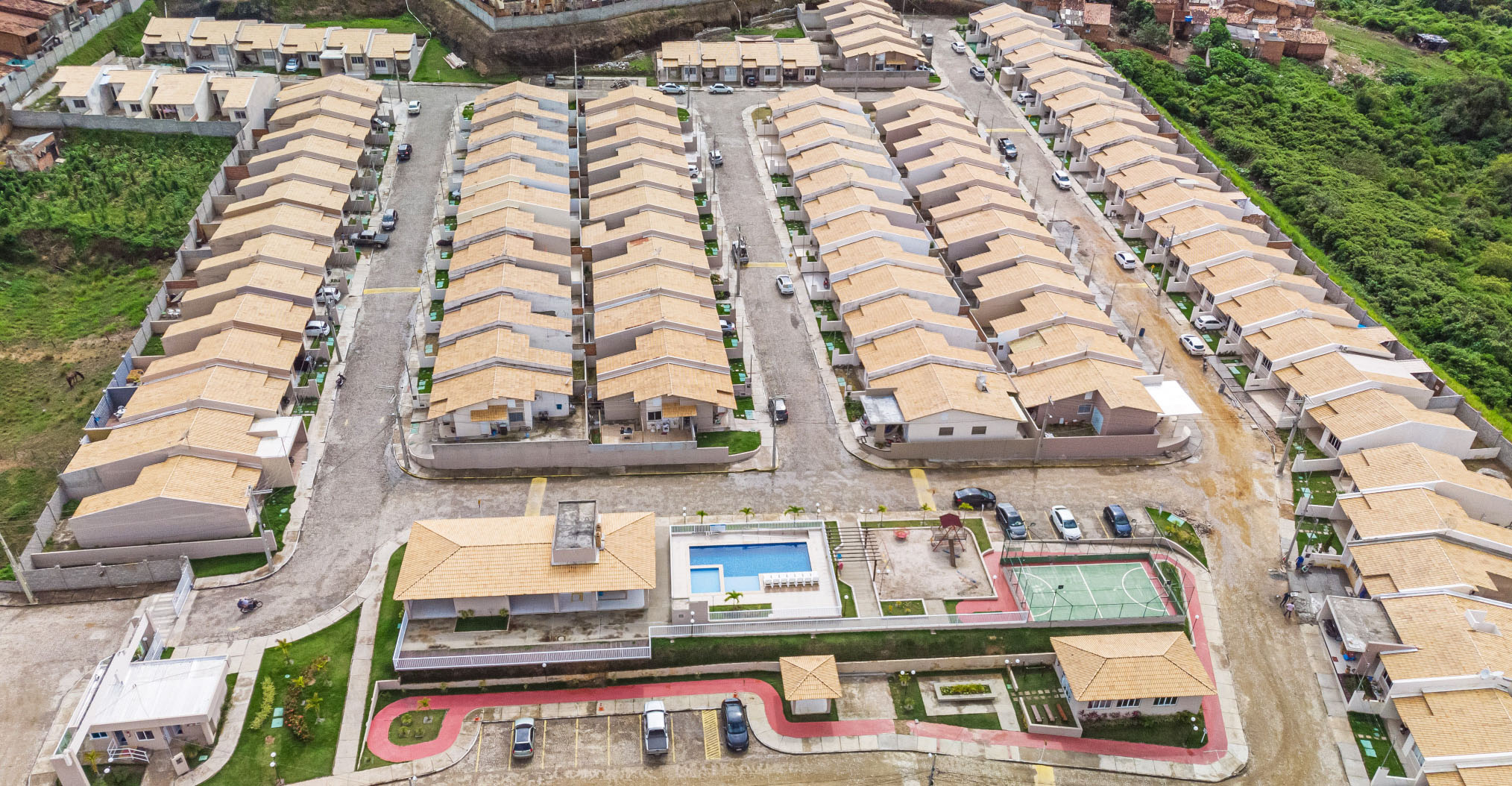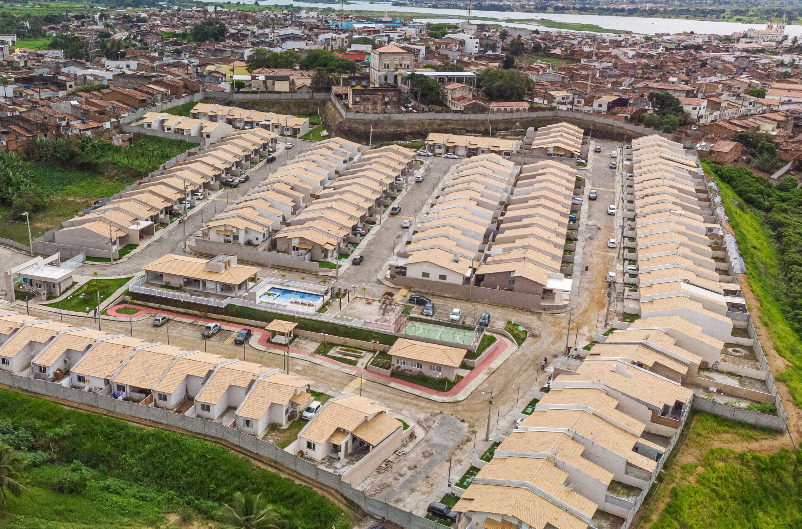 Condomínio fechado em Propriá com casas na laje, 2/4 sendo um suíte, vaga de garagem e área de lazer completa. Casas com até 77,63m².