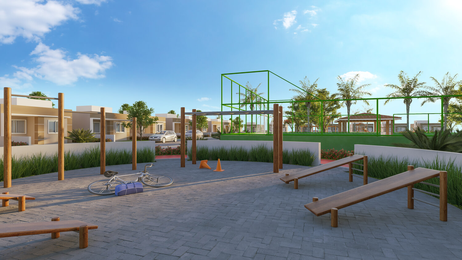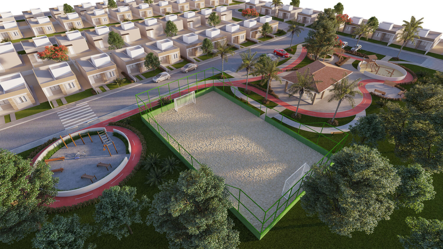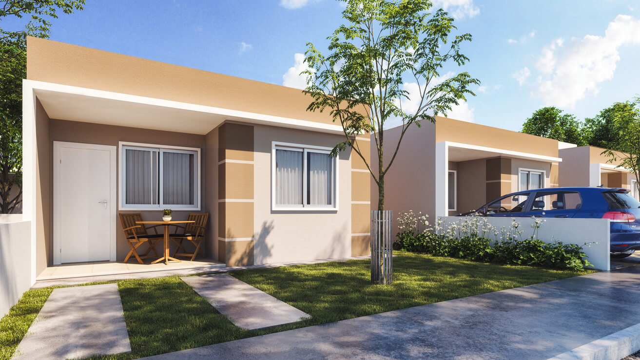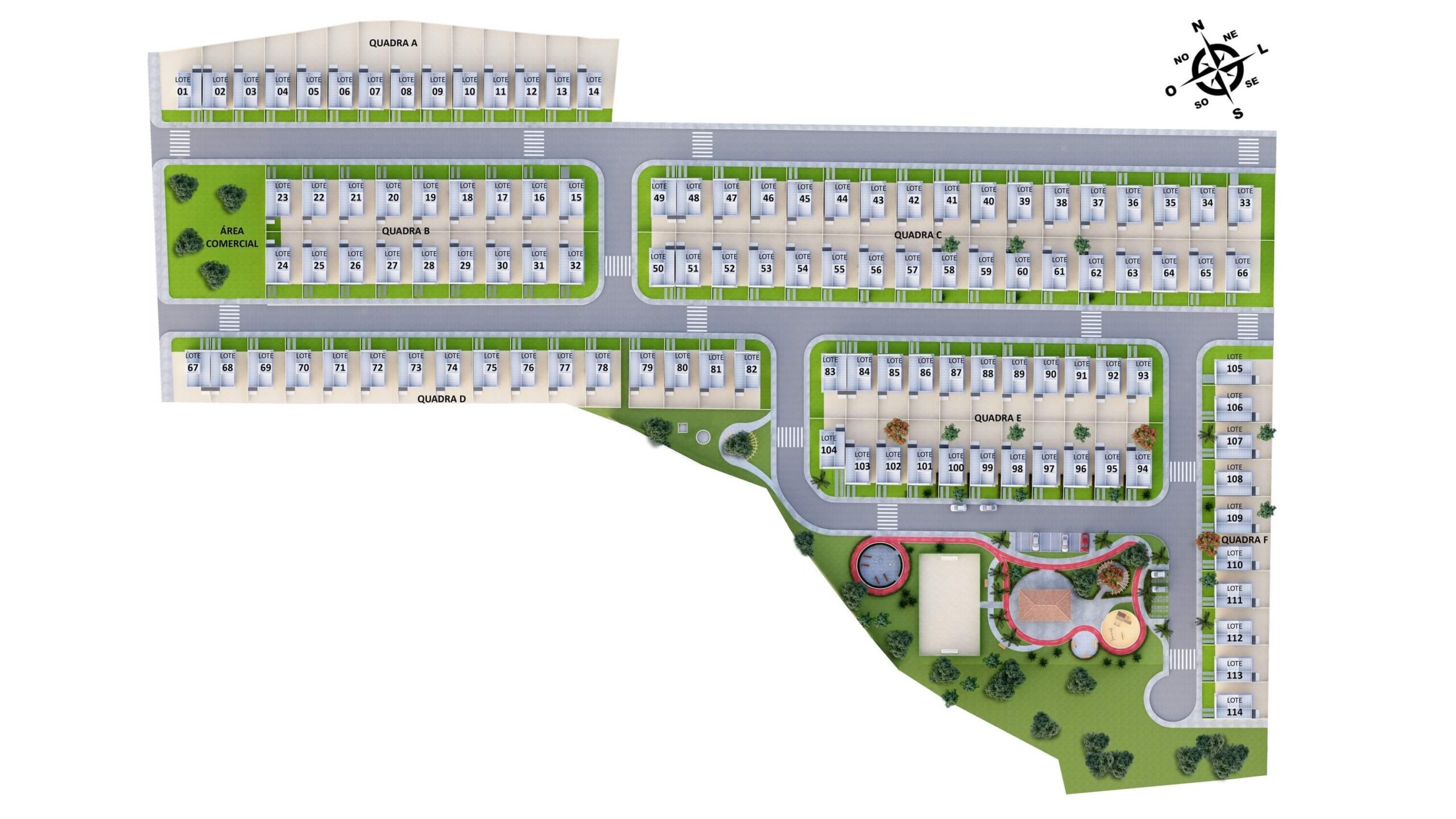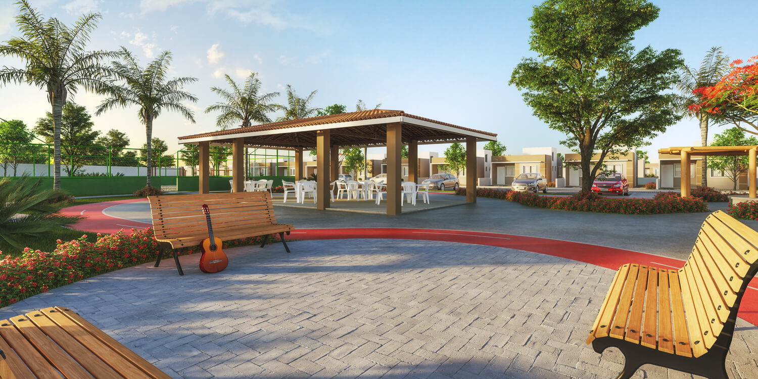 Casas com laje, Área Comercial, Área de lazer entregue equipada, *verificar memorial descritivo.